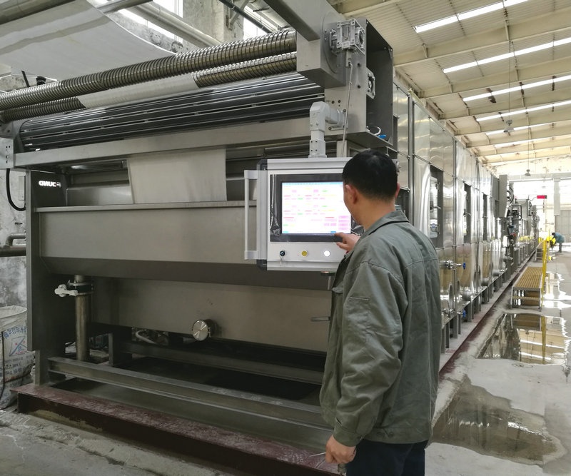 平幅煮漂機(jī)是低張力、高水洗效能的自動化針織棉前處理設(shè)備,煮漂機(jī)的主要作用就是去除纖維上的蠟質(zhì)、果膠物質(zhì)、色素以及礦物質(zhì)等雜質(zhì),為后一道的染色過程提供需要的白度與毛效,以便達(dá)到染料上色的基礎(chǔ)。改變了傳統(tǒng)的在染缸做前處理,之后再在染缸中完成染色過程、后水洗、固色等多道工序的加工工藝,有利于提高產(chǎn)品質(zhì)量,節(jié)約能耗。