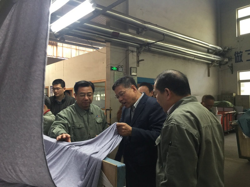 徐紀(jì)平副秘書長(zhǎng)等領(lǐng)導(dǎo)到染部車間現(xiàn)場(chǎng),實(shí)地察看了公司生產(chǎn)現(xiàn)場(chǎng),向公司領(lǐng)導(dǎo)了解了公司今年經(jīng)營(yíng)情況和轉(zhuǎn)型升級(jí)工作。莫總向調(diào)研組領(lǐng)導(dǎo)介紹了公司基本情況和近年來公司推進(jìn)轉(zhuǎn)型升級(jí)工作,特別是今年實(shí)施的淘汰落后產(chǎn)能實(shí)施智能化生產(chǎn)技改項(xiàng)目。調(diào)研組領(lǐng)導(dǎo)在車間里仔細(xì)察看了公司引進(jìn)的意大利貝利尼公司生產(chǎn)的超低浴比溢流多功能生態(tài)勻染染色機(jī),以及中央控制室,染料助劑自動(dòng)化輸送系統(tǒng),對(duì)公司實(shí)施智能化生產(chǎn)技改的轉(zhuǎn)型升級(jí)舉措給予高度肯定,鼓勵(lì)公司領(lǐng)導(dǎo)進(jìn)一步通過轉(zhuǎn)型升級(jí),推動(dòng)企業(yè)向信息化、自動(dòng)化、智能化方向發(fā)展,實(shí)現(xiàn)節(jié)能減排,減員增效,提高企業(yè)競(jìng)爭(zhēng)力,促進(jìn)傳統(tǒng)企業(yè)的新發(fā)展。